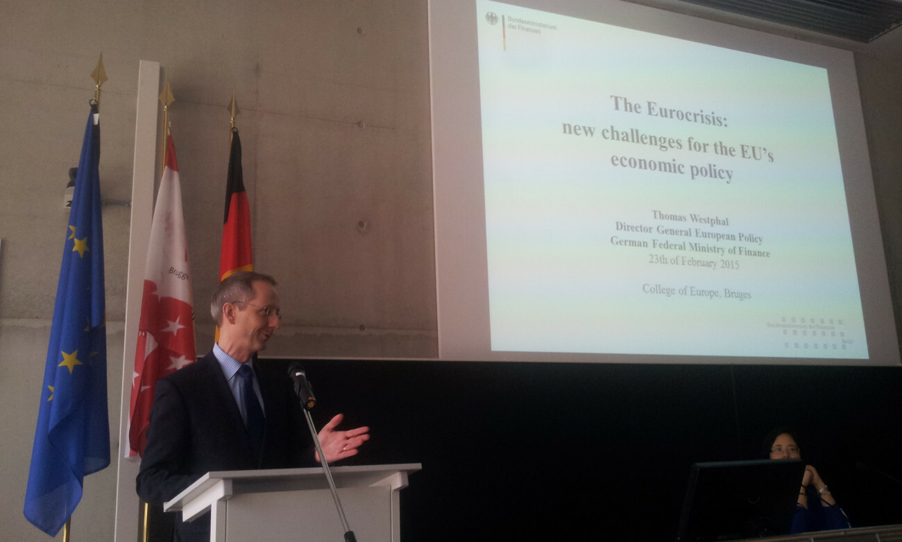 On Monday 23 February 2015, Director General Thomas WESTPHAL, in charge of European Policy at the German Ministry of Finance, gave a lecture on 'The Eurocrisis: new challenges for the EU’s economic policy'.