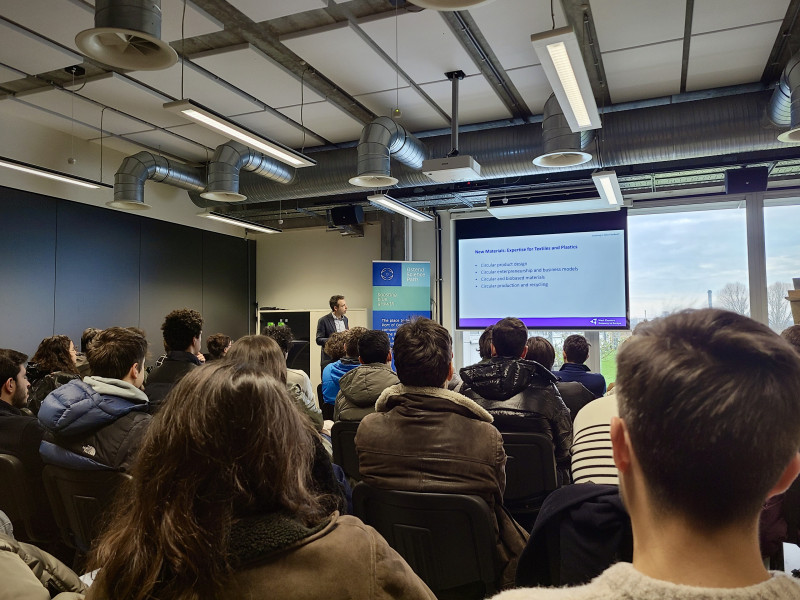 The day began at the Blue Energy Park of Een provinciaal agentschap met een hart voor de… | POM West-Vlaanderen in Ostend, where students engaged in talks on the importance of the "blue economy" in West Flanders, as well as the transformative wind energy projects that have been built along the Belgian coast over the last 15 years. These projects have turned the Port of Ostend into a vital hub for wind farm shipping and construction. Speakers also emphasized the key role of EU regional and innovation funding in supporting West Flanders’ green energy initiatives and sustainable development.