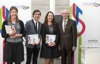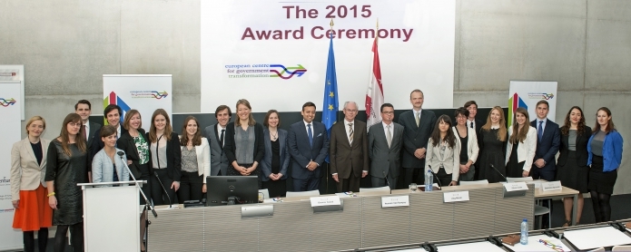 La Cérémonie de remise des Prix du European Centre for Government Transformation a eu lieu le 27 avril 2015. L'équipe gagnante a travaillé pendant six mois à l'étude de la politique des transports de la ville de Barcelone et plus précisément sur l'amélioration des services à proposer dans le cadre du « last mile delivery service ». Valentin FABRE, Liliana Caraça MATEUS, Luis ALVARADO MARTINEZ et Hermione MACKAY ont donc remporté le Prix de l'Innovation dans le service public 2015 décerné par M. Herman VAN ROMPUY, ancien président du Conseil européen.