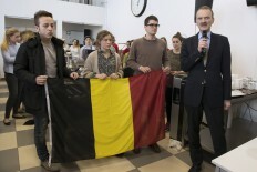 Ce même jours à 11h, un group d'étudiants et de membres du personnel du Collège d'Europe ont rejoint le maire LANDUYT, ainsi que l'administration de la ville de Bruges, pour oberserver une minute de silence devant l'hôtel de ville de Bruges. Ils y ont également signé le registre de deuil.