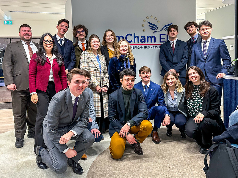 'Each year, MATA students based in Europe (Bruges and Natolin) visit transatlantic stakeholders in an annual study trip to Brussels. In 2024 MATA students visited the Mission of Canada to the EU, the European External Action Service, the American Chamber of Commerce to the European Union, and the Council of the European Union.