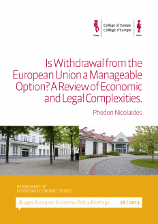The Department of European Economic Studies has published a new 'Bruges European Economic Policy Briefing' entitled "Is Withdrawal from the European Union a Manageable Option? A Review of Economic and Legal Complexities", by Professor Phedon NICOLAIDES, Jan Tinbergen Chair and Director of the Department of European Economic Studies at the College of Europe.