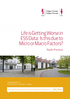 The Department of European Economic Studies has published a new 'Bruges European Economic Research paper' entitled "Life Is Getting Worse in ESS Data: Is This Due to Micro or Macro Factors?" by Mr Nadir PREZIOSI, who is Academic Assistant in the Department of European Economic Studies at the College of Europe.