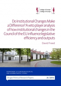 The Department of European Political and Administrative Studies published a new 'Bruges Political Research Paper' entitled "Do Institutional Changes Make a Difference? A veto player analysis of how institutional changes in the Council of the EU influence legislative efficiency and outputs", written by Mr David FREED.