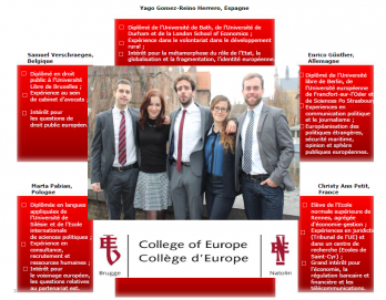 The members of our delegation are : Marta PABIAN, Christy Ann PETIT, Yago GOMEZ-REINO HERRERO, Enrico GUNTHER et Samuel VERSCHRAEGEN. They come from five different countries: France, Germany, Belgium, Spain and Poland as well as from different departments of the College of Europe.