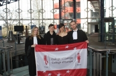 The team of the College of Europe participating in the “Concours européen des Droits de l’Homme René Cassin” attended the semi-finals on the 15th of April 2013, held in Strasbourg. The team, composed of Fabio CHIOVINI (IT, Law) and Anna WARDELL (UK, IRD) and coached by Sara BENEDI LAHUERTA (ES, Law), Živa NENDL (SL, Law) and Marie-Salomé RINUY (FR, EG) performed impressively in the two rounds against the University of Lucerne and the University of Strasbourg.