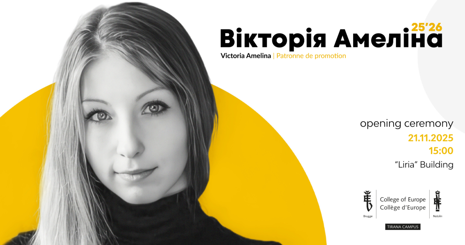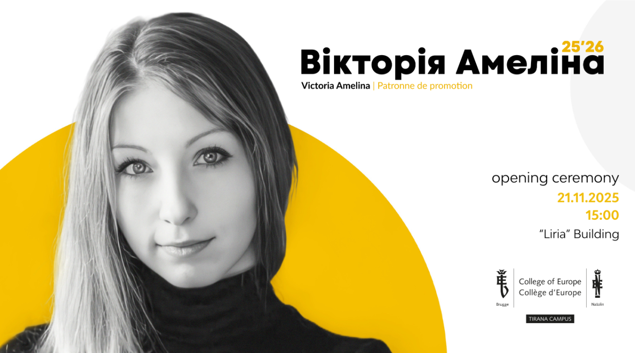 The Opening Ceremony for the Victoria Amelina Promotion 2025/2026 of the College of Europe - Tirana Campus, will take place on Friday, 21 November 2025 at 14:30, in Aula Magna, Liria Building (Tirana).