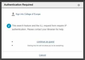 In some cases a pop-up from OCLC will appear - just login with your College credentials :