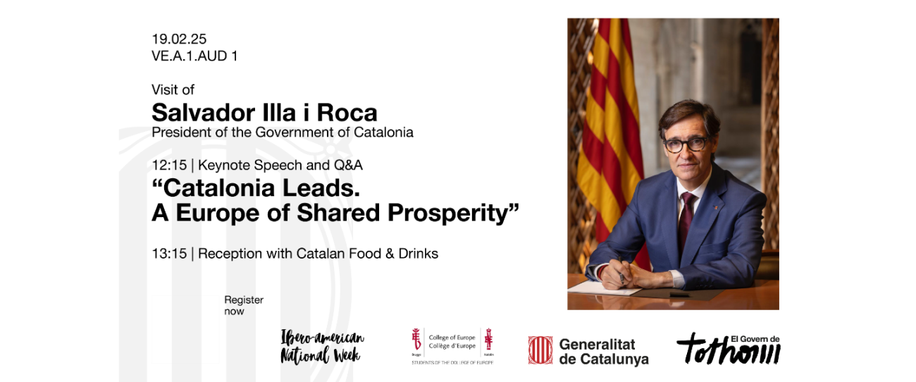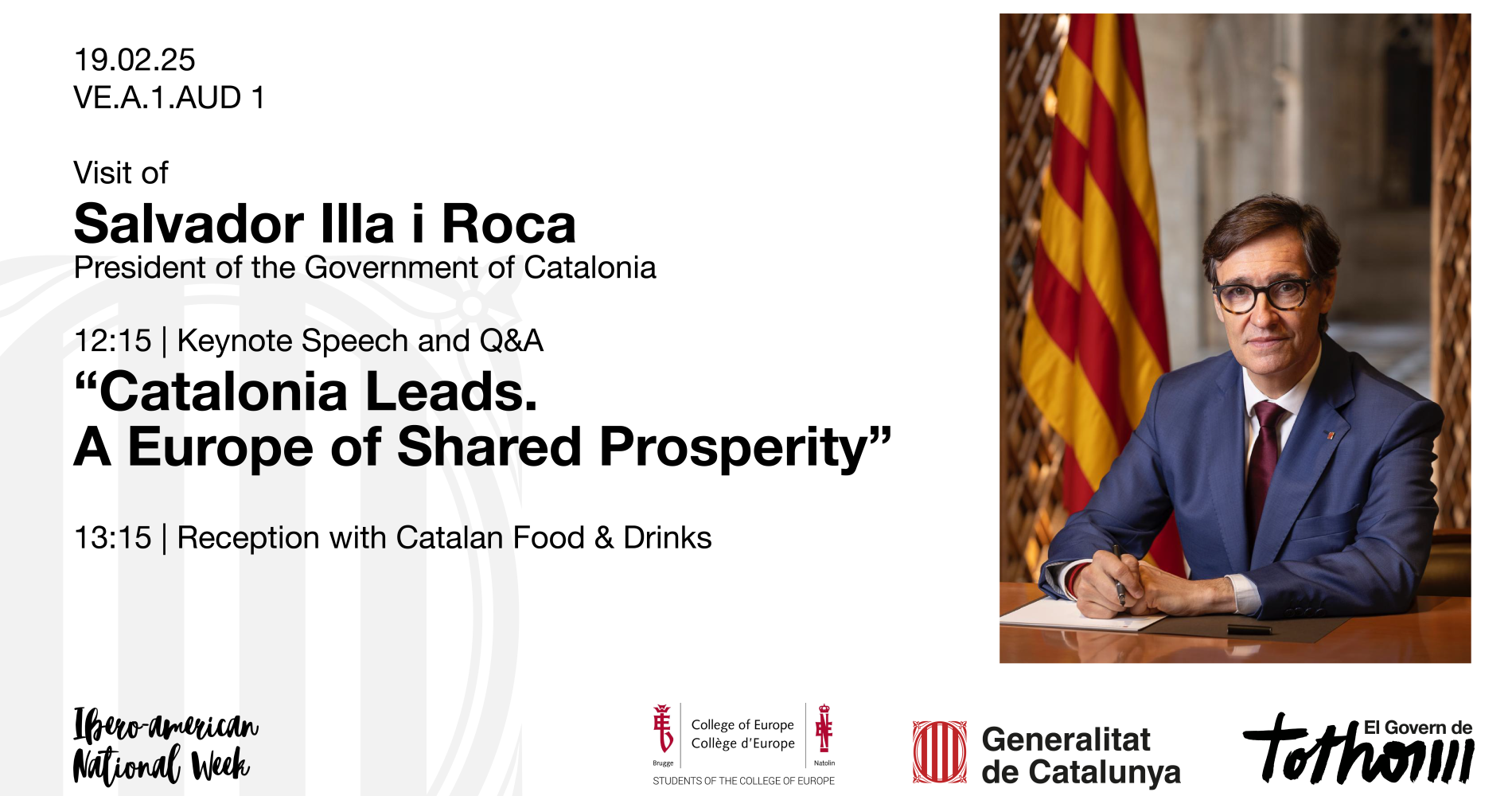 On Wednesday 19 February, the students of the Portuguese, Latin American and Spanish Societies, are delighted to welcome the President of the Goverment of Catalonia, Salvador IIIa i Roca, as part of the Ibero-American Week at the College of Europe.