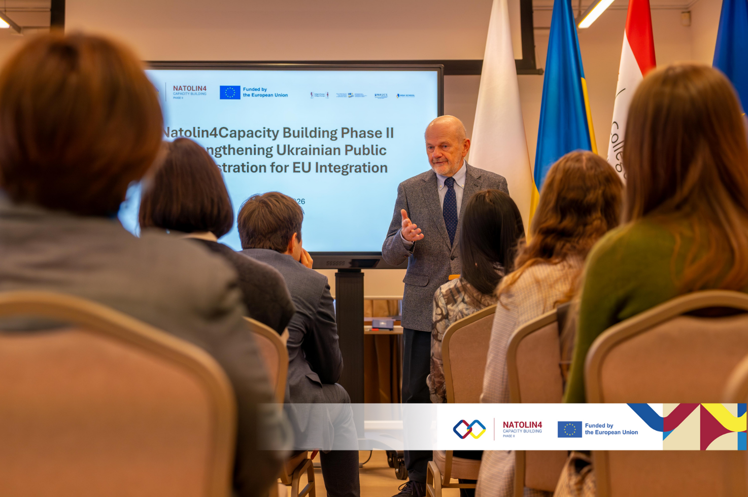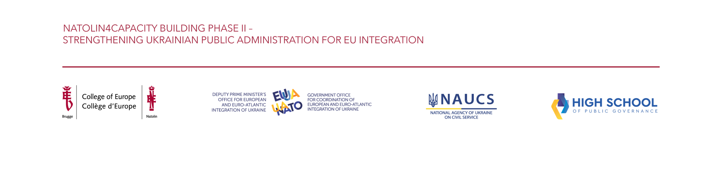 Natolin4Capacity Building Phase II — Strengthening Ukrainian Public Administration for EU Integration (N4CB-II) is funded by the European Union and jointly implemented by the College of Europe in Natolin and the High School of Public Governance, in cooperation with the Government Office for Coordination of European and Euro-Atlantic Integration and the National Agency of Ukraine on Civil Service.