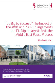 Emilie OUDART. Too Big to Succeed? The Impact of the 2004 and 2007 Enlargements on EU Diplomacy vis-à-vis the Middle East Peace Process. .” EU Diplomacy Paper 01/2024, College of Europe, Bruges, January 2024.