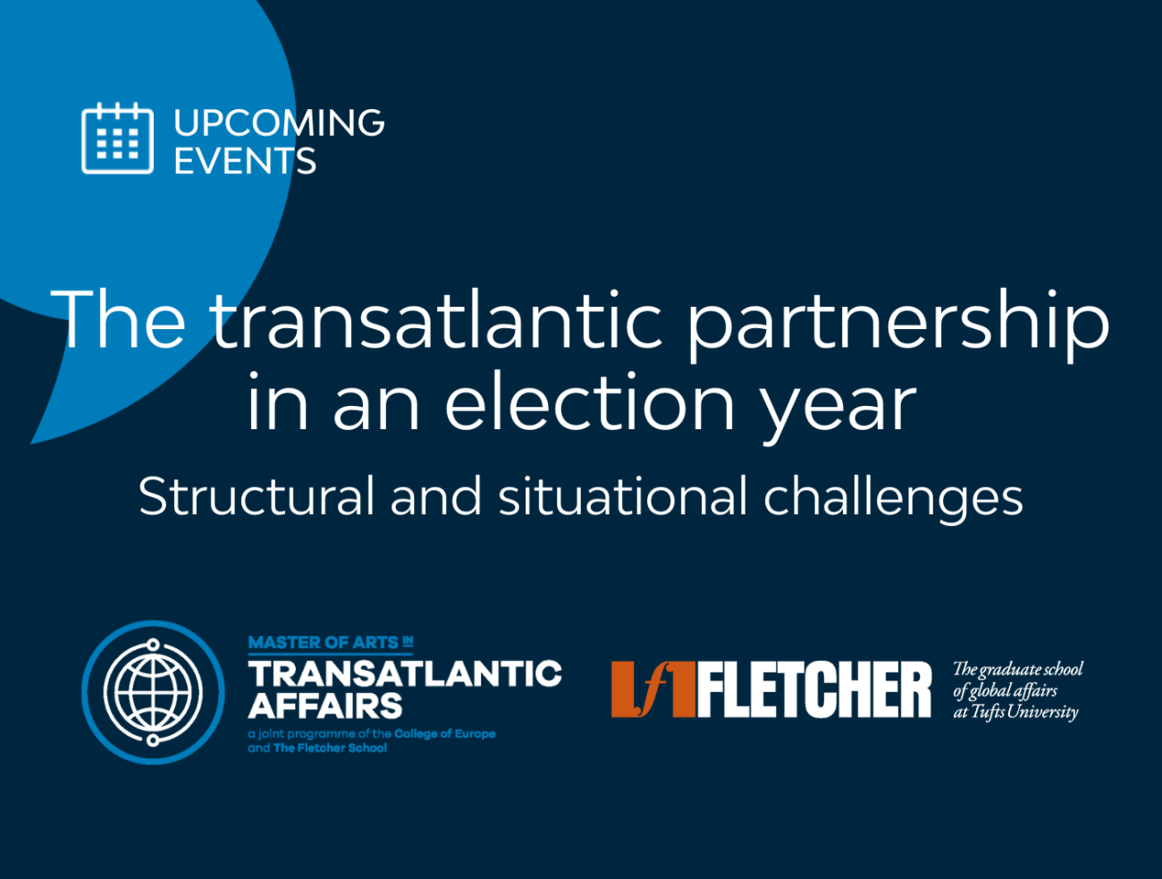 To open the discussion of these crucial issues, the Chair of Transatlantic Trade and Economy (College of Europe, in cooperation with Microsoft) is pleased to announce its first event of the academic year 2024-2025, "The Transatlantic Partnership in an Election Year. Structural and Situational Challenges," scheduled on 17 September, from 17h30 to 19h00 (followed by a reception).